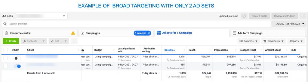 We can’t give away our playbook, but by understanding the FB algorithm we used dynamic creative and broad audience targeting to hone into the right target audience. This requires intense A/B testing and close monitoring of all campaigns.