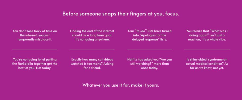 With a historically negative connotation surrounding the use of inhalers, we found an opportunity to allow users of the product to take ownership and be proud of their delivery system by making it their own. The idea was to transfrom the narrative around the statement “Where is my inhaler?” This shift in the way users viewed the product was a perfect chance to create a new brand including name, feel, ID, colors and type, and then build them into their E-commerce and Social presence with a healthy dose of wit and sarcasm.